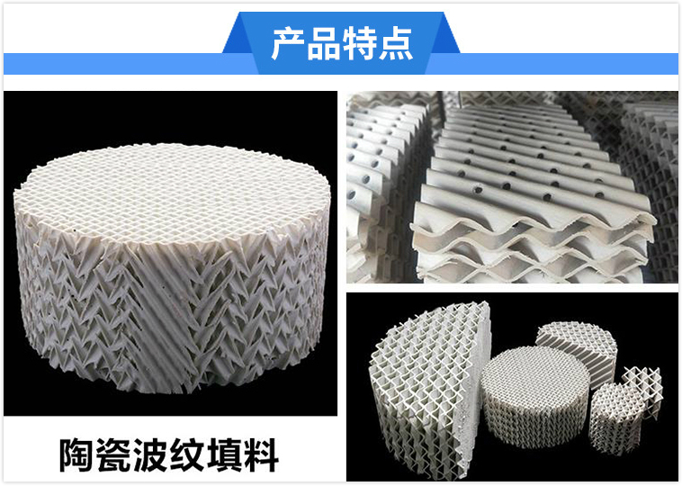 陶瓷波紋填料比表面積高,在提高產(chǎn)值、降低能耗、提高功率等方面具有很大的優(yōu)勢(shì)。同時(shí),由于填料的有序放置,材料中所含的固體顆??赏ㄟ^填料的波紋底部排出,因此其防堵性能優(yōu)異。